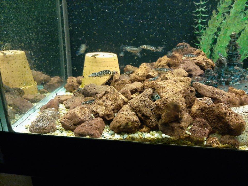 adults and fry juliochromis transcriptus ghombe and lamprologus brichardi silver
